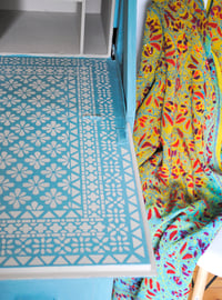 The pull down writing table has been stencilled using a selection of Indian inspired stencils from the Nicolette Tabram Designs range.